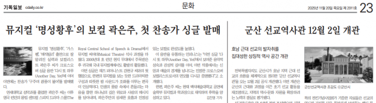 [기사] 뮤지컬 ‘명성황후’의 보컬 곽은주, 첫 찬송가 싱글 발매(기독일보)
