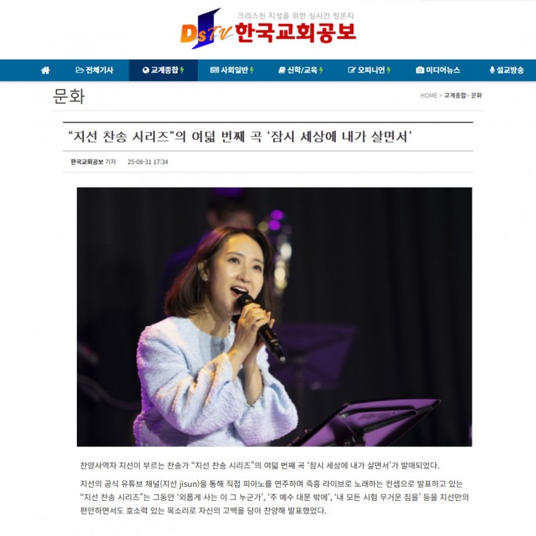 [기사] “지선 찬송 시리즈”의 여덟 번째 곡 ‘잠시 세상에 내가 살면서’(한국교회공보)