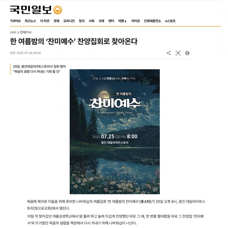 [기사] 한 여름밤의 ‘찬미예수’ 찬양집회로 찾아온다(국민일보)