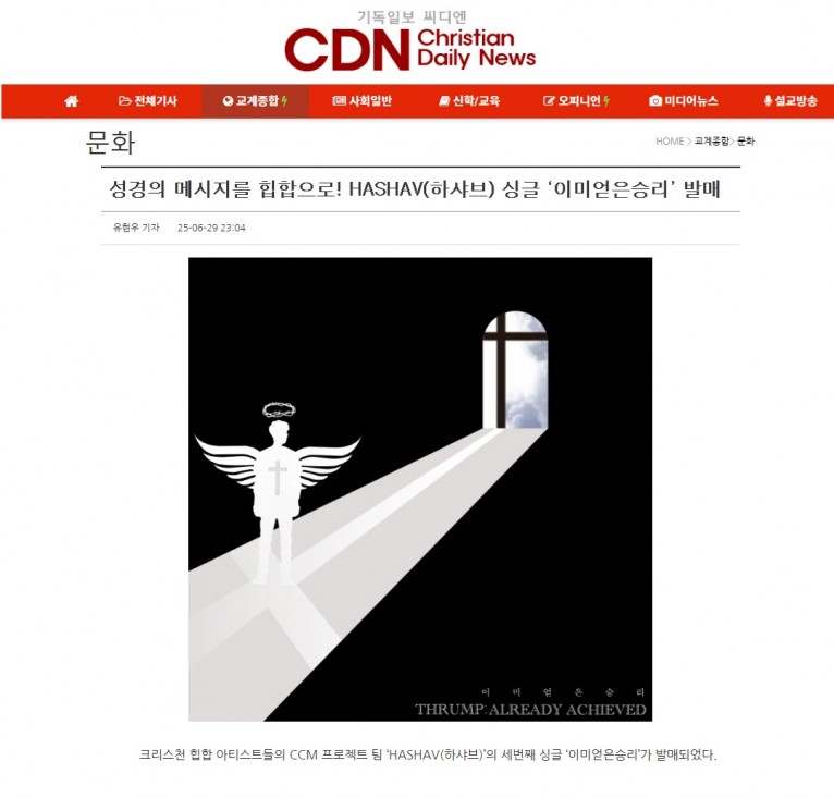 뮤직타임 [기사] 성경의 메시지를 힙합으로! HASHAV(하샤브) 싱글 ‘이미얻은승리’ 발매(기독일보 씨디엔)