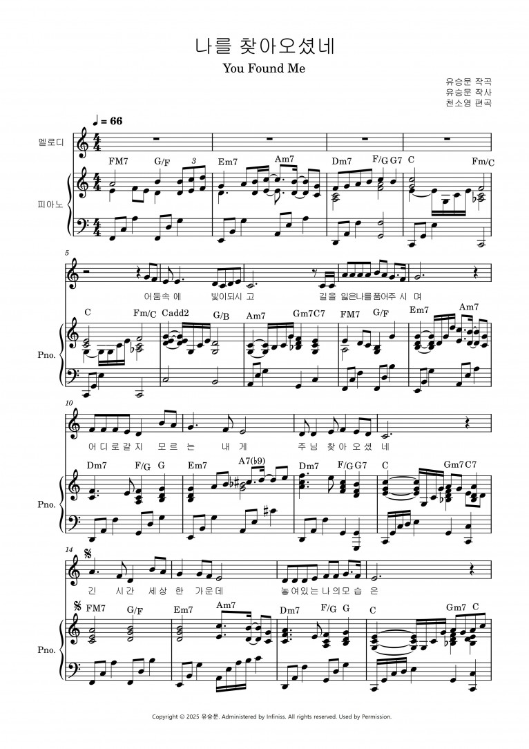 뮤직타임 [악보] 나를 찾아 오셨네(You Found Me) - 윤형문