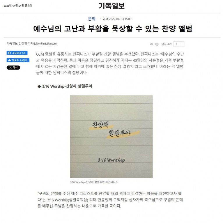 [기획기사] 예수님의 고난과 부활을 묵상할 수 있는 찬양 앨범(기독일보)