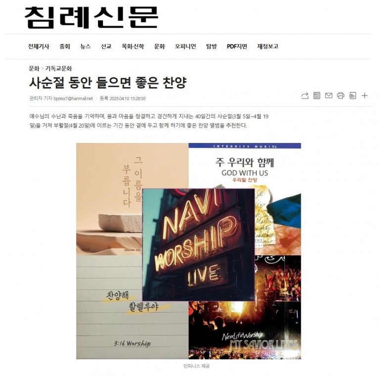 뮤직타임 [기획기사] 사순절 동안 들으면 좋은 찬양(침례신문)