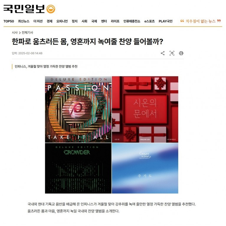 뮤직타임 [기획기사] 한파로 움츠러든 몸, 영혼까지 녹여줄 찬양 들어볼까(국민일보)