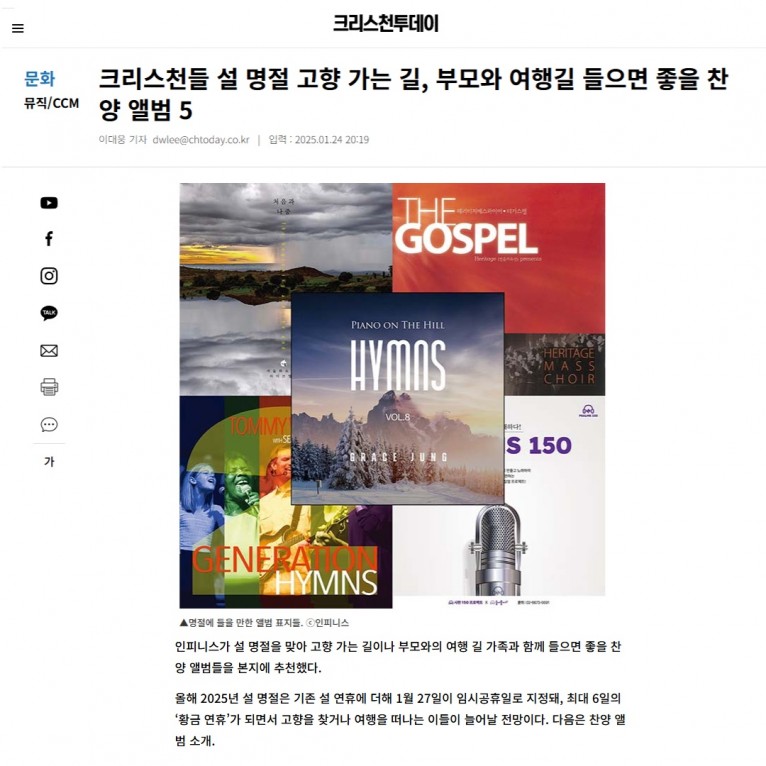 [기사] 크리스천들 설 명절 고향 가는 길, 부모와 여행길 들으면 좋을 찬양 앨범 5(크리스천투데이)