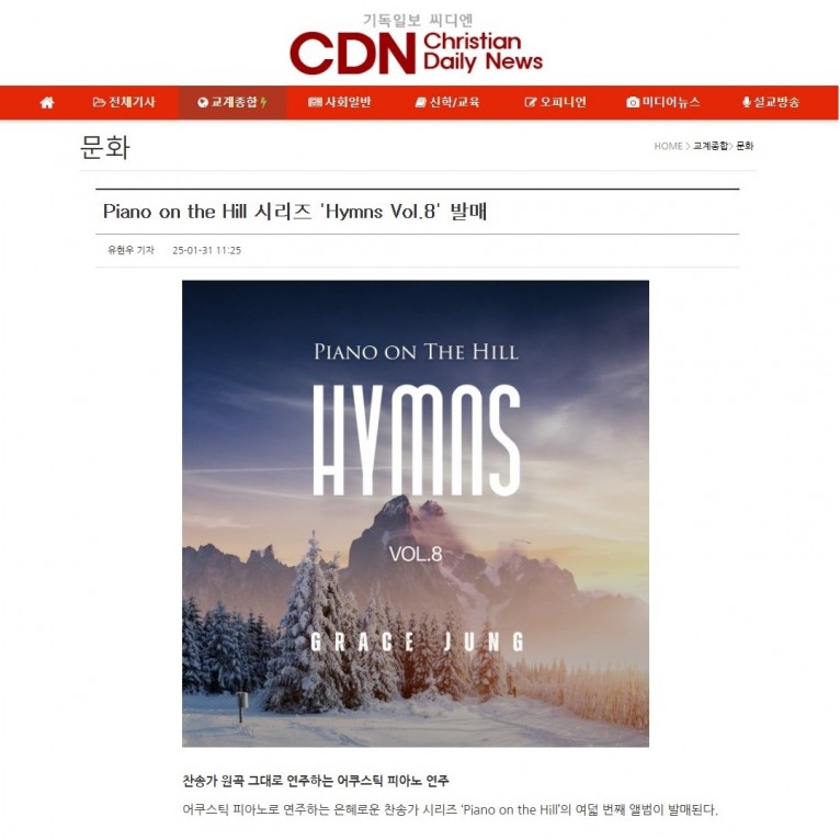 뮤직타임 [기사] Piano on the Hill 시리즈 'Hymns Vol.8' 발매(기독일보 씨디엔)