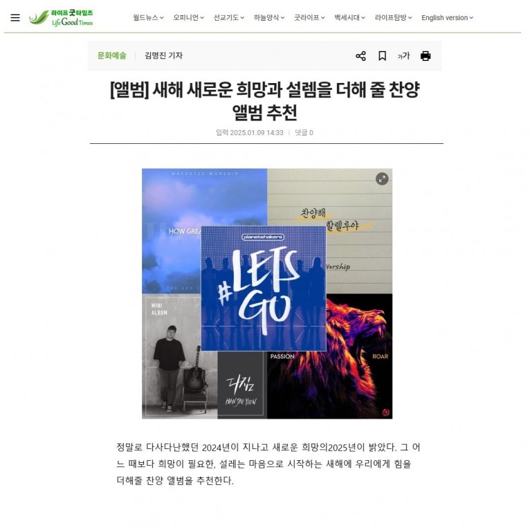 뮤직타임 [기획기사] 새해 새로운 희망과 설렘을 더해 줄 찬양 앨범 추천(라이프굿타임즈)