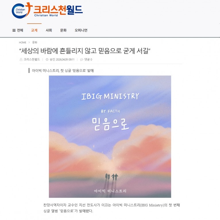 [기사] “세상의 바람에 흔들리지 않고 믿음으로 굳게 서길”_아이빅 미니스트리 싱글 발매(크리스천월드)