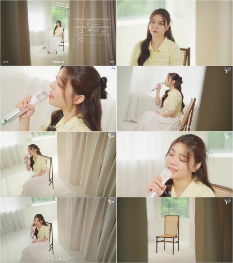 ‘눈물로 고백하는 말’은 성경의 시편 1편부터 150편까지 은혜로운 메시지를 아티스트들이 부르는 릴레이 프로젝트이자 ‘시편 150 프로젝트’에서 내놓는 일곱 번째 곡이다. 에일리 특유의 섬세한 가창력에 은혜로운 가사가 듣는 이들의 마음을 잔잔하게 울리며 감동적인 K-CCM으로 탄생됐다.
