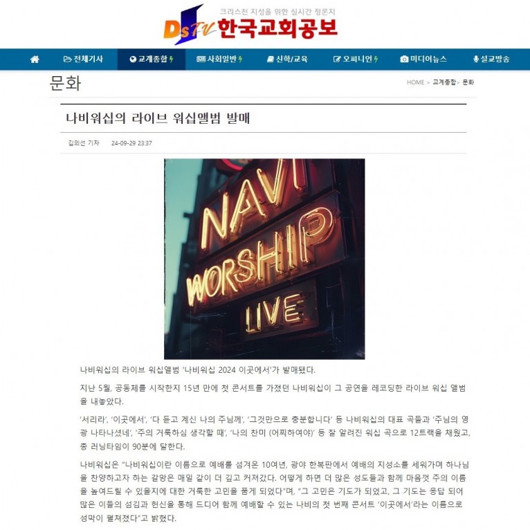 [기사] 나비워십의 라이브 워십앨범 발매(한국교회공보)