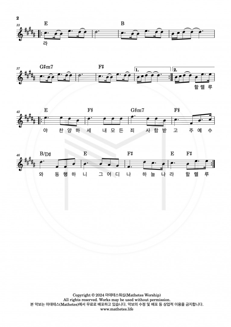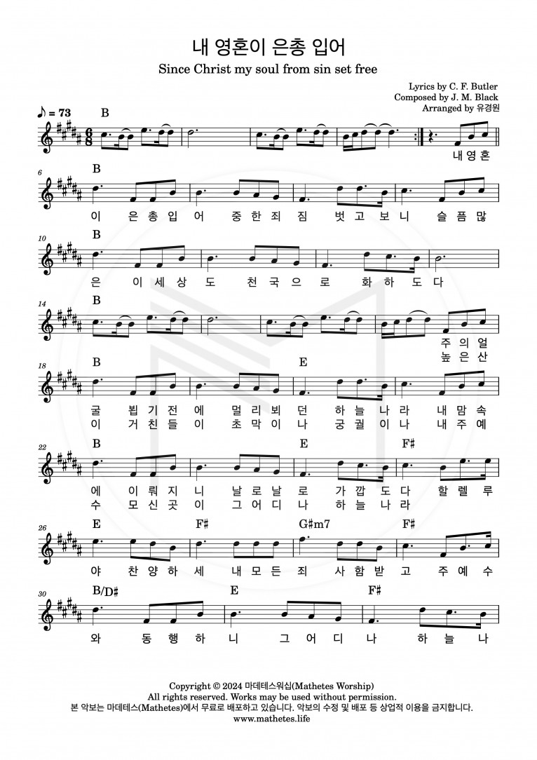 뮤직타임 [악보] 내 영혼이 은총 입어 - 마데테스워십 (Mathetes Worship)