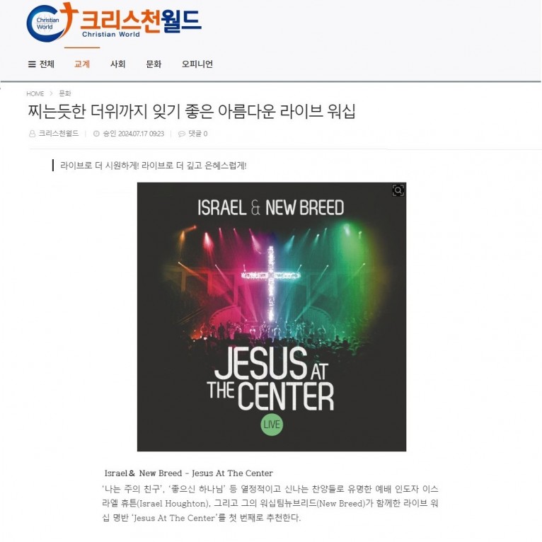 뮤직타임 [기획기사] 찌는듯한 더위까지 잊기 좋은 아름다운 라이브 워십(크리스천월드)