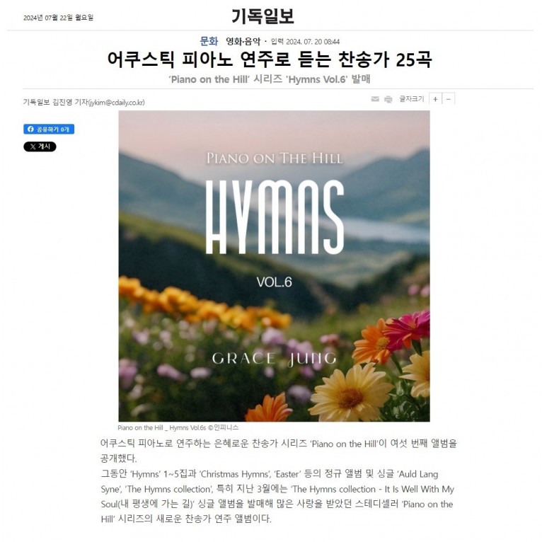 뮤직타임 [기사] 어쿠스틱 피아노 연주로 듣는 찬송가 25곡(기독일보)