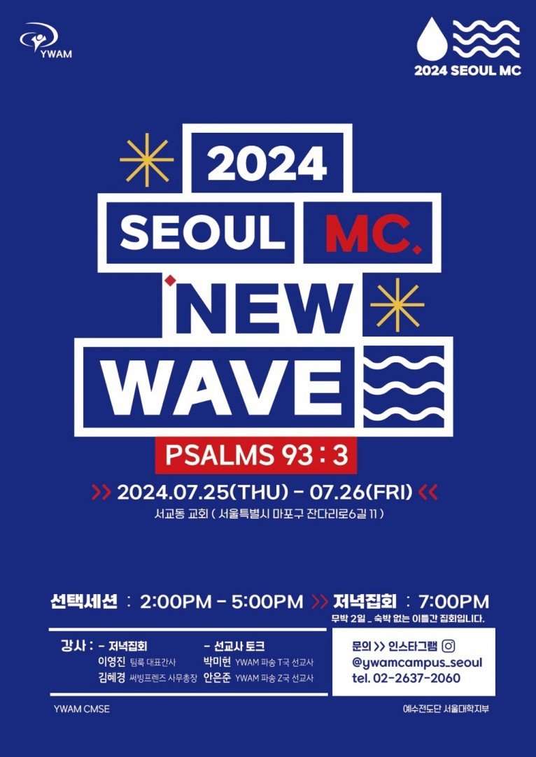 예수전도단은 “MC 2024를 통해 예수전도단의 첫 부르심인 선교의 파도가 온 땅을 덮는 비전이 성취되기를 기도하며 서울지역과 교회들 안에 하나님을 뜨겁게 예배하며 선교에 대한 열정이 일어날 것을 소망한다”고 덧붙였다.