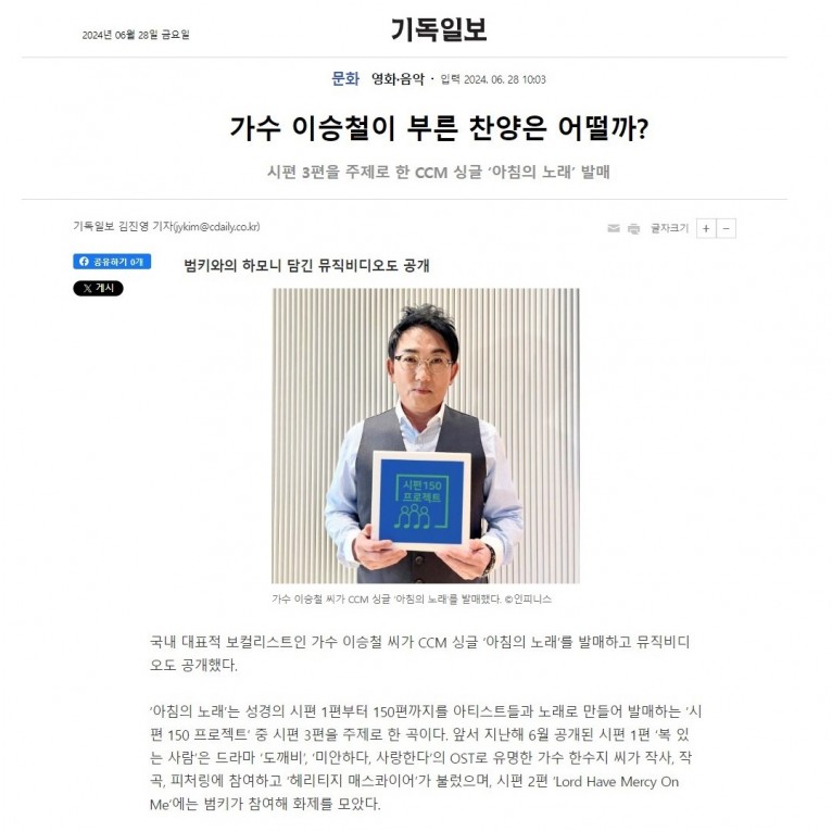 뮤직타임 [기사] 가수 이승철이 부른 찬양은 어떨까(기독일보)