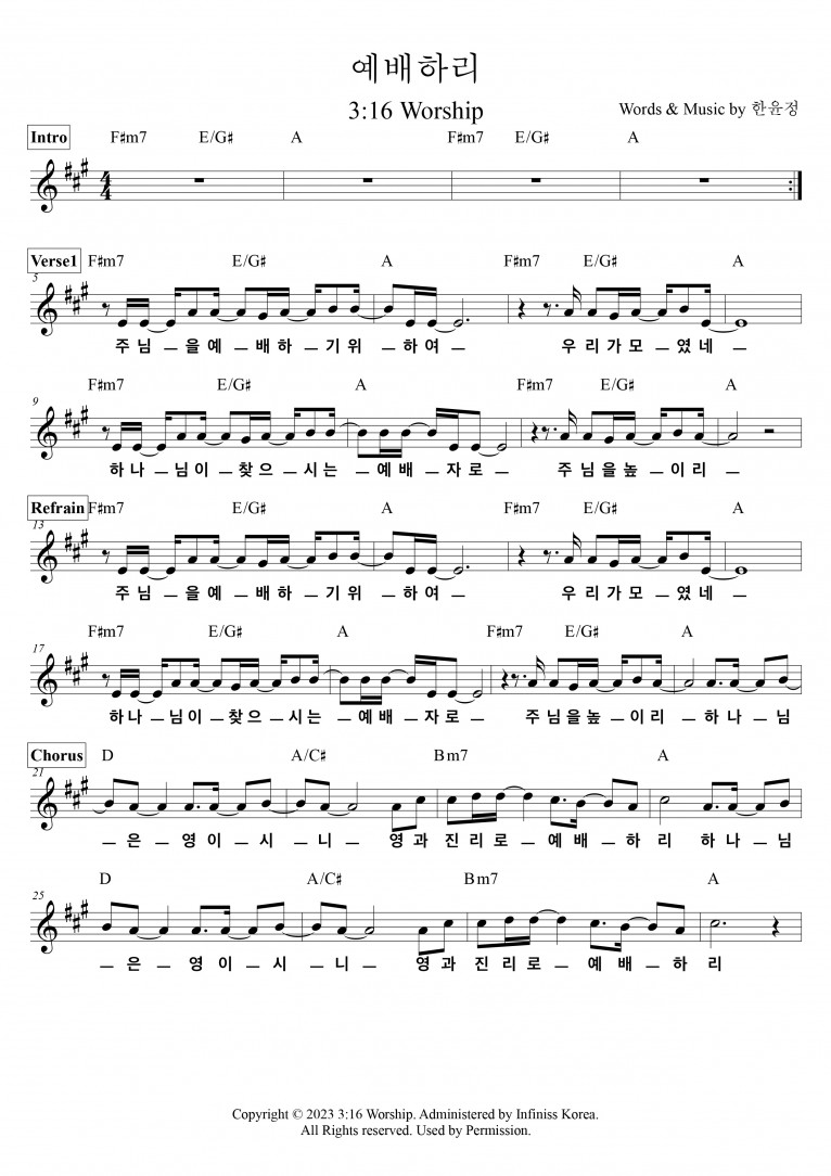 악보출처 https://shorter.me/5wRsm (3:16 Worship 구글 드라이브)