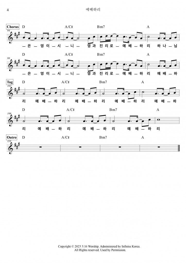 뮤직타임 [악보 & MV] 예배하리 - 3:16 Worship