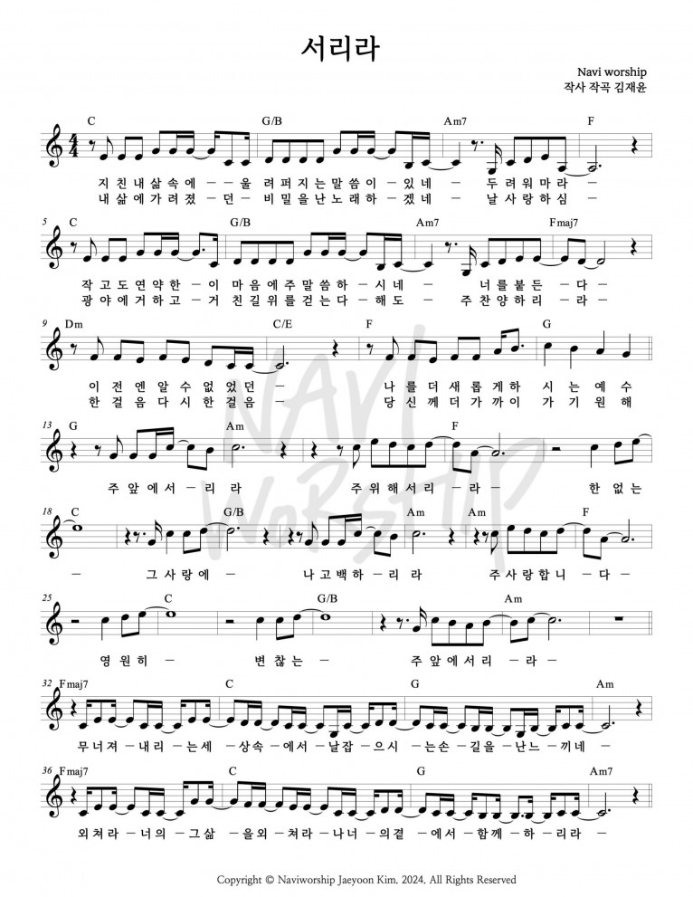 *나비워십에서 배포한 악보입니다. 아래 악보출처에서도 확인하실 수 있습니다.