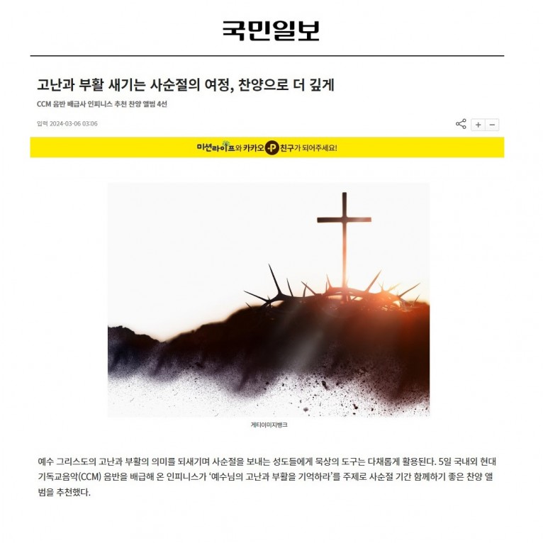 [기획기사] 고난과 부활 새기는 사순절의 여정, 찬양으로 더 깊게(국민일보)