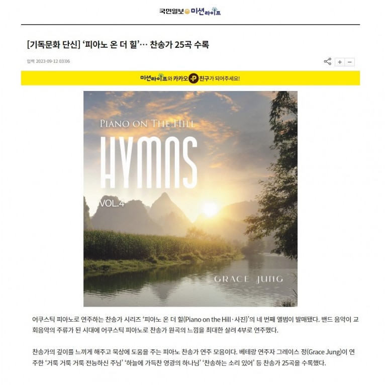 뮤직타임 [기사] ‘피아노 온 더 힐’… 찬송가 25곡 수록(국민일보)