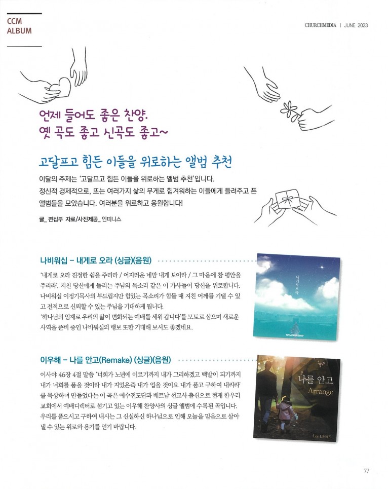 [잡지] 고달프고 힘든 이들을 위로하는 앨범 추천(월간 Church Media 6월호)
