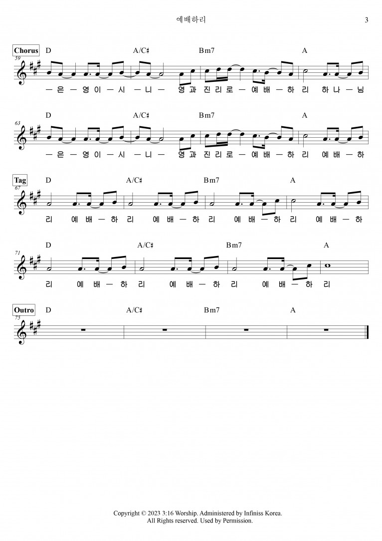 뮤직타임 [악보] 예배하리 - 3:16 Worship (예배하리)