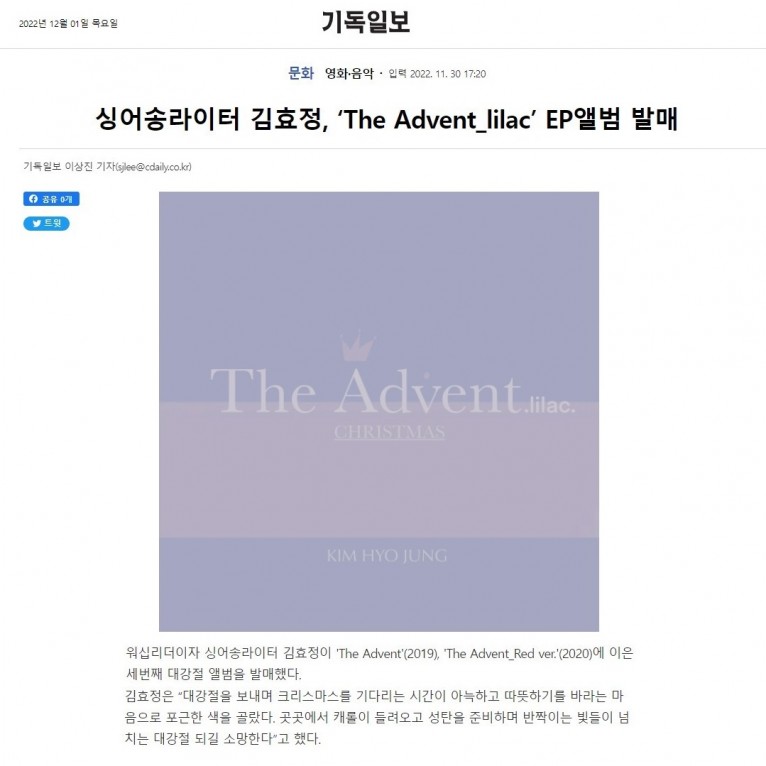 #김효정 #TheAdvent #lilac #대강절 #워십리더 #싱어송라이터