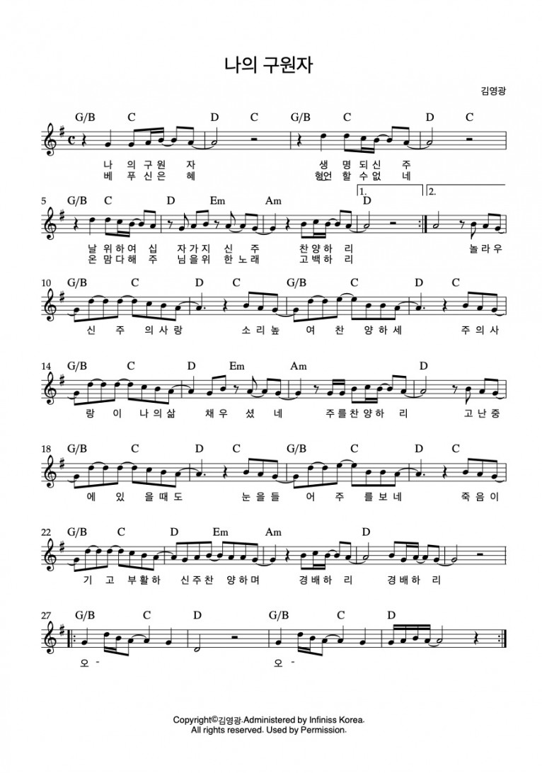 뮤직타임 [악보] 나의 구원자 - 김영광 (예수의 사랑이) (EP)(음원)