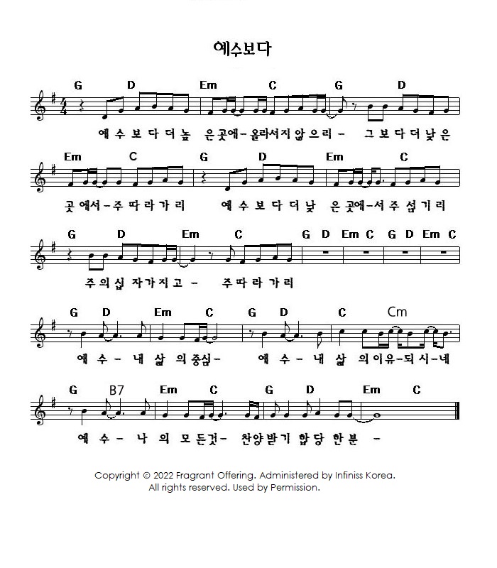 [악보] 예수보다 - 향기로운 제물 (예수보다)