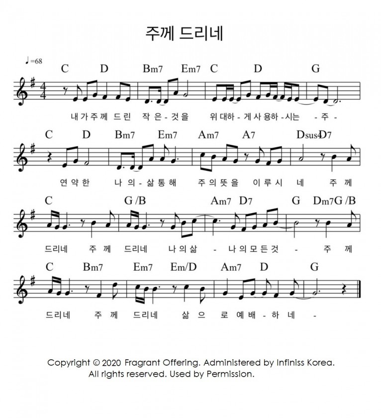 [악보] 주께 드리네 - 향기로운 제물 (향기로운 제물 1st)