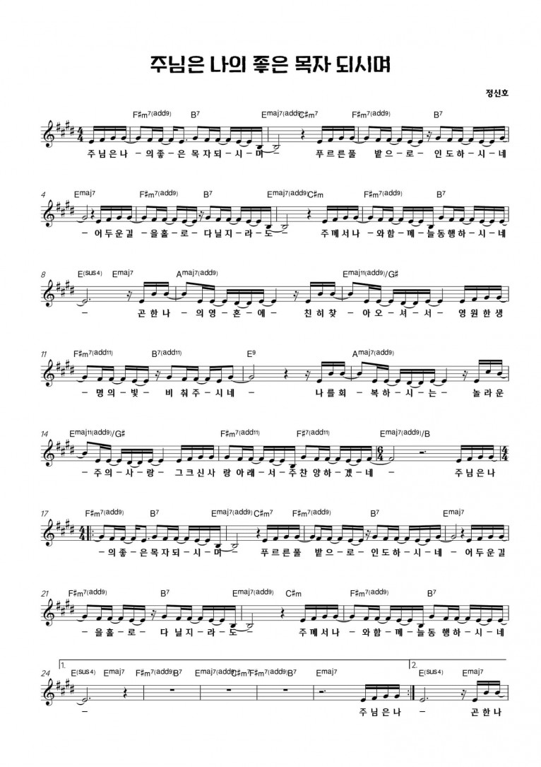 뮤직타임 [악보] 주님은 나의 좋은 목자 되시며 - E-Cove Ministry (이커브미니스트리) (진정 부흥을 꿈꾸는가)