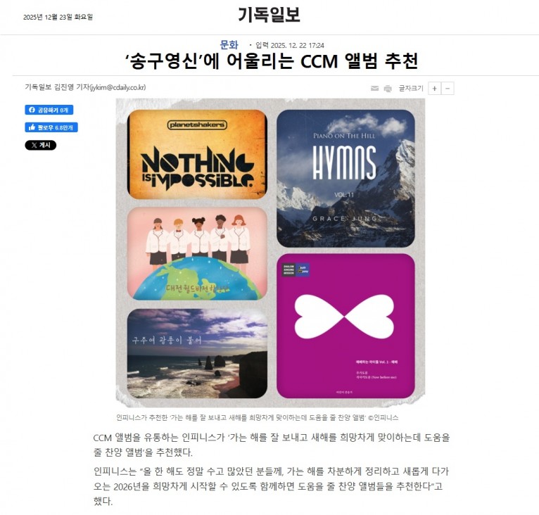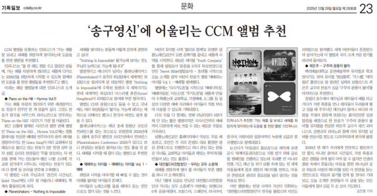 뮤직타임 [기획기사] ‘송구영신’에 어울리는 CCM 앨범 추천(기독일보)