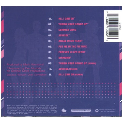 1. All I Can Do 2. Throw Your Hands Up 3. Summer Song 4. Joyride 5. Angel In My Heart 6. Put Me In The Picture 7. Forever In My Heart 8. Diamond 9. Throw Your Hands Up (Remix) 10. Joyride (Remix) 11. All I Can Do (Remix)