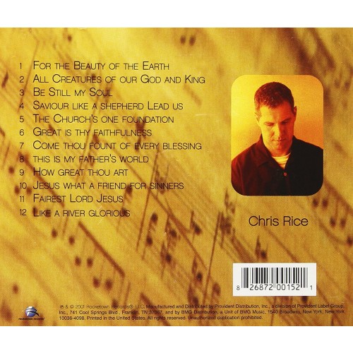 1 For The Beauty Of The Earth 2 All Creatures Of Our God And King 3 Be Still My Soul 4 Savior Like A Shepherd Lead Us 5 The Church's One Foundation 6 Great Is Thy Faithfulness 7 Come Thou Fount Of Every Blessing 8 This Is My Father's World 9 How Great Thou Art 10 Jesus What A Friend For Sinners 11 Fairest Lord Jesus 12 Like A River Glorious