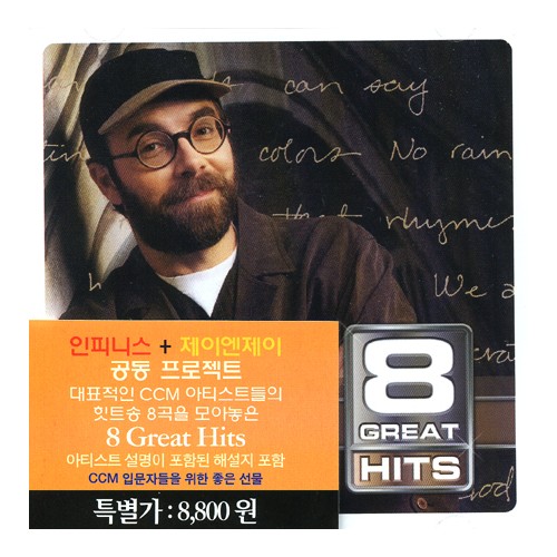 "CCM이란걸 한번 본격적으로 감상 해보고 싶은데...뭐부터 들어볼까?" "추천해줄께. 두장의 CD에 수많은 힛트곡들이 담겨있는......" "아니~ 좀 더 깊이있게 가수들의 음악을 감상해보고 싶어. 부담없이!" 새로운 대중 음악 CCM. 지난 20여년 동안 크리스천의 문화를 새로운 지경으로 넓혀준 대중 기독교 음악. 이미 국내에도 수많은 매니아들이 있는 CCM 음악에 새로운 오디오 입문서 역할을 해줄 '8 GREAT' 시리즈가 국내에서도 발매되었다. 해가 다르게 넓어지는 해외 CCM 시장과 하루가 다르게 쏟아져 나오는 수많은 음반들. CCM을 처음 접하려는 사람들은, 그 많은 음반들 중 어떤 것들부터 들어볼지 고민이 되게 마련이다. 다양한 해외 CCM 음반들을 국내에 소개해온 기획사인 인피니스와 제이엔제이가 공동으로 제작한 '8 GREAT' 시리즈는 7장의 CD에 미국 CCM계의 대표적인 아티스트 7명의 힛트 싱글 8곡을 다룬 연작 음반이다. 스티븐 커티스 채프먼, 디씨 토크, 뉴스보이스, 오디오 아드레날린, 스티브 그린, 소닉플러드, 마이클 카드... 팝과 락, 모던워십, 인스퍼레이셔널 음악 등 다양한 장르에서 두각을 보여온 CCM계의 산 증인들. 그들의 노래 8곡들을 감상하다 보면, '이것이 바로 CCM이구나'라는 음악적 성찬을 경험할 수 있게 될 것이다. 또 앨범내에는 아티스트들의 프로필을 담은 해설지도 포함되어 있다. 8,800원이라는 저렴한 가격으로 출반되는 '8 GREAT' 시리즈는 CCM을 입문하기 위한 컬렉션으로, 또 CCM을 소개해주고 싶은 친구들에게 선물용으로 적합할 것이다.